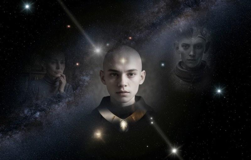 Интереса у публики он не вызвал. Ну и ладно. Пусть лежит. Я старательно снабжала его иллюстрациями - практически в каждой главе есть хотя бы одна (иногда больше). Стиль везде одинаковый: на одном и том же звездном космическом фоне - коллаж из портретов действующих лиц и изображением места действия на заднем плане. Большего мне от нейросетей добиться не удалось. С другой стороны, так оно больше соответствует авторскому замыслу, а не бездумному творчеству ИИ.