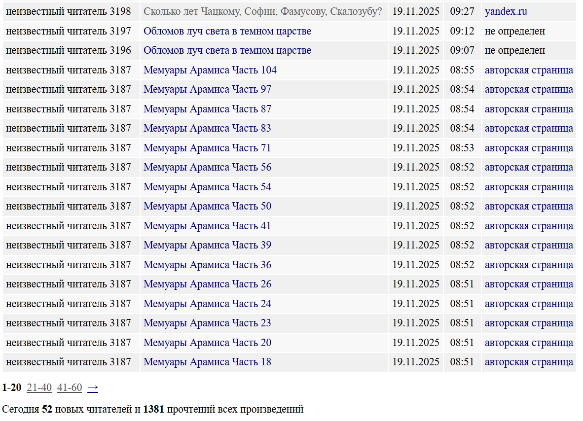 Насколько я понял, причина такого интереса - это "Мемуары Арамиса", которые какой-то читатель скачивал по отдельным главам.