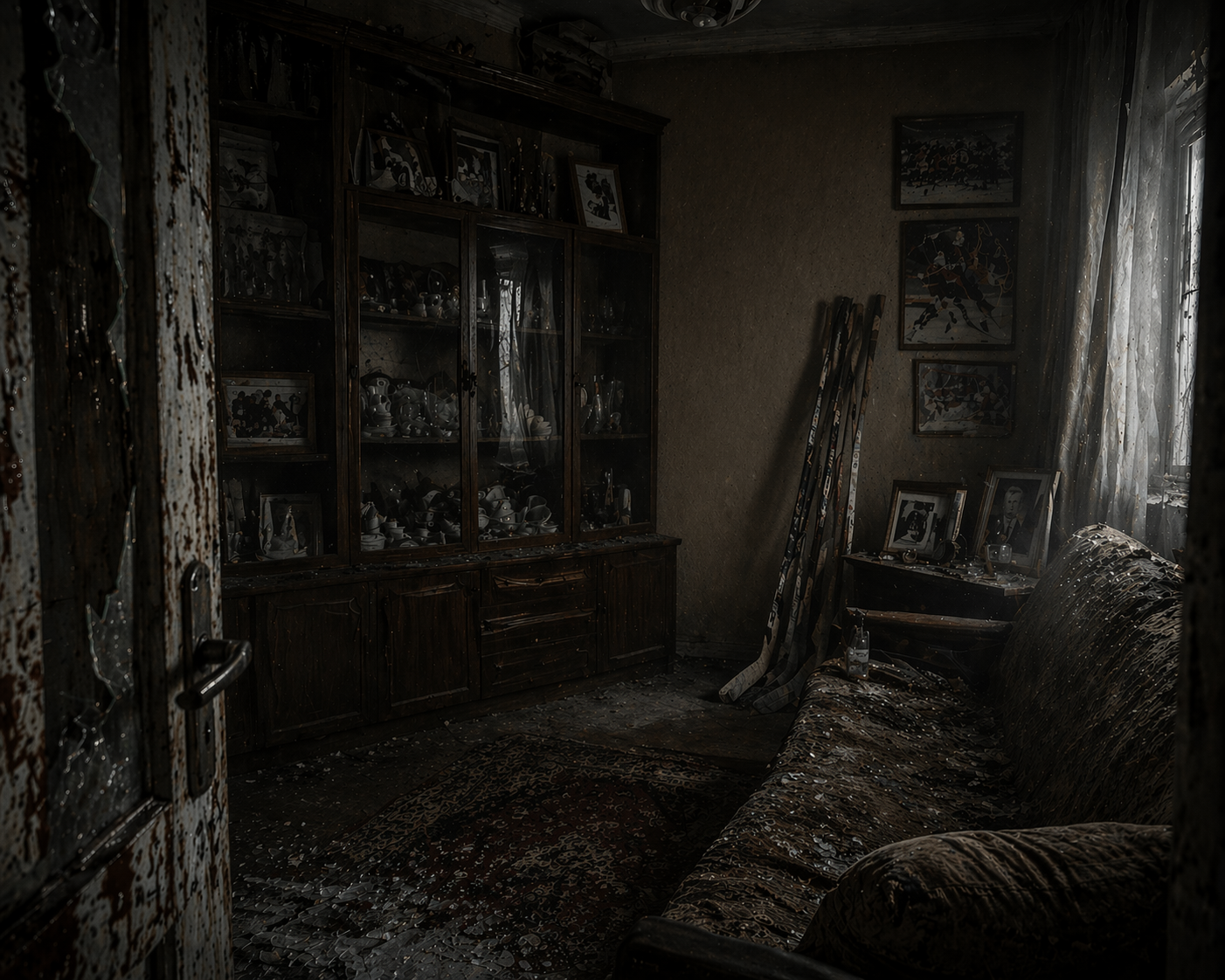 За стеклянными дверцами винтажного шкафа стояли сервизы и фоторамки с улыбающейся семьёй. На стенах, портреты. На верхних полках лежали медали и грамоты за победы и хорошие результаты в хоккее, все выданные клубом «Серебряная шайба». А у дивана, прислонённые к стене, стояли клюшки. Я присмотрелся к выцветшим фотографиям, и до меня дошло. На грамотах, на медалях, на снимках было одно и то же имя. Если представить соседа без отёков, моложе, с живым лицом, то это был он. И тогда мне вдруг стало по-настоящему интересно, как человек мог дойти до такой жизни – из профессионального хоккеиста в это липкое, вонючее существование. Но спрашивать было уже не у кого. На самых нижних полках стояли два портрета: тучной женщины и сурового мужчины лет пятидесяти. Рядом, возле блюдца и поминальных свечей, у портрета мужчины оставалась пустая рюмка и неоткрытая бутылка виски – этикеткой из нулевых. – Простите, что называл вашего сына мусором. Простите за моё незнание... и за то, что собираюсь забрать ваше подношение и его клюшки. Вам это уже не понадобится, – извинился я перед портретами, будто бы ради очищения кармы. В карму я, конечно, не верил. Но если она всё-таки существовала, хотелось думать, что мне это зачтётся. |
