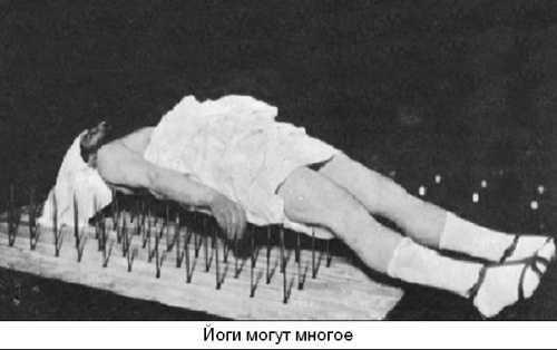 Хорошо поработали цензоры и в отношении индийских йогов. Мы все, конечно, слышали про них; видели в документальных фильмах, как острый клинок или копьё не может пронзить тело йога, как легко ходят они босиком по костру. Слышали, видели, однако не задумывались, поэтому они и отождествлялись у нас с каким-то подобием физкультурников, но нам не давали всей правды о них. Сама йога преподносилась с целью демонстрации возможностей человека, которых он способен достичь в результате упорных тренировок (что, в общем-то, верно), однако полностью игнорировалась духовная основа этой системы. Но беда-то в том, что даже пропущенная информация внушала уважение и должна была заставлять задавать «неудобные» вопросы. Например. Как уязвимая человеческая плоть может успешно противостоять острому клинку или копью? Как человек может босиком ходить по костру? В первом случае кожа просто физически обязана поддаться колющей стали, но не остаётся даже маленького пореза. Во втором случае ноги опять-таки просто физически обязаны обгореть, но нет даже лёгкого ожога. Биологическое тело не обладает такими возможностями. А человек может! Почему? Не потому ли, что человек имеет не только видимую материальную оболочку, но и душу, которая доминирует над всем материальным. Увы, люди устроены так, что подобные вопросы они начинают задавать лишь тогда, когда необычных сведений становится слишком много; если же чудеса встречаются в небольших количествах, то мы их благополучно игнорируем. Так получилось и с йогами: сообщения о них были недостаточными для подвижки в человеческих умах, а подсказки в виде духовной основы данного учения люди не получали. Лишь после краха «железного занавеса» появился доступ ко всей информации о йогах, и позже эту тему вкратце рассмотрим…
