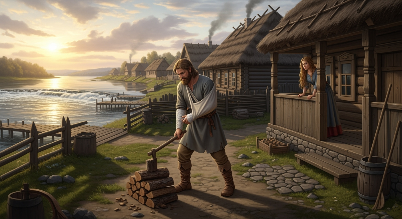 Неделю назад его, полумертвого, с копейной раной под лопаткой, привезли сюда. Мокруша, молодая вдова-знахарка, приняла его и буквально поставила на ноги своими травами, заговорами и неусыпной заботой.