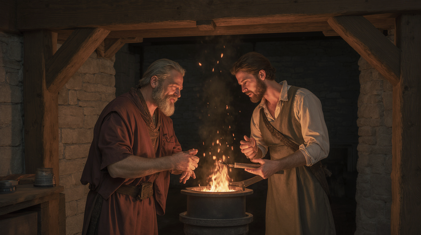 — Ты… ты чьих будешь, мил-человек? — наконец выдохнул он. — По виду ратник, а берешься кузнечному делу меня, потомственного кузнеца, учить.