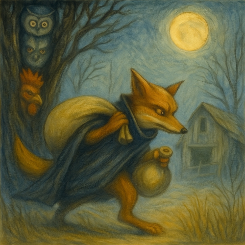 Пункт первый: Наблюдение. Сова Софья, пользуясь своими ночным зрением, установила круглосуточное наблюдение за лисьей норой. Через два дня она принесла сенсационные данные: раз в сутки, глубокой ночью, Лиса пробиралась в старый, заброшенный птичник на окраине своих владений с полным кувшином воды и мешком зерна.