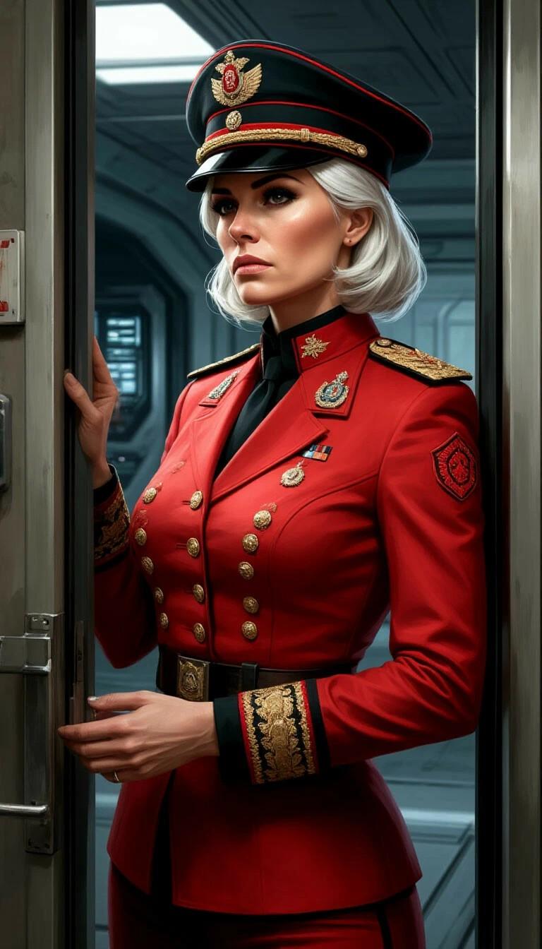 Она открыла дверь и остановилась на пороге. Майор в отставке Агнешка Константин — женщина сорока лет, высокого роста, крепкого телосложения, с прямой осанкой и идеальной военной выправкой. Прямой нос, правильные черты лица, глубоко посаженные чёрные глаза в сочетании с плавными линиями скул и подбородка создавали необычное сочетание серьёзности и мягкости. У неё были совершенно белые волосы — весьма редкая для риксианцев генетическая мутация.