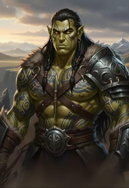 Он был по дикому красивым, не в общепринятом смысле. Слово, немыслимое для описания орка, но другого не подобрать. Его черты были не грубыми, а резкими и четкими, словно высеченными из темного камня скульптором, знающим толк в силе и гармонии. Кожа цвета оливковой бронзы была гладкой, шрамы на его лице — а они были, тонкая белая линия поперек скулы и еще одна, чуть заметная, рассекающая левую бровь — не уродовали, а лишь подчеркивали его характер. Длинные черные волосы были заплетены по бокам в две толстые, тугие косы, а остальные волны свободно ниспадали на мощные плечи. Но главное — глаза. Не желтые, как у его сородичей, а цвета жидкого золота, словно светящиеся изнутри. В них горел не тупой гнев, а холодный, пронзительный, невероятно живой ум. В них читалась абсолютная власть.