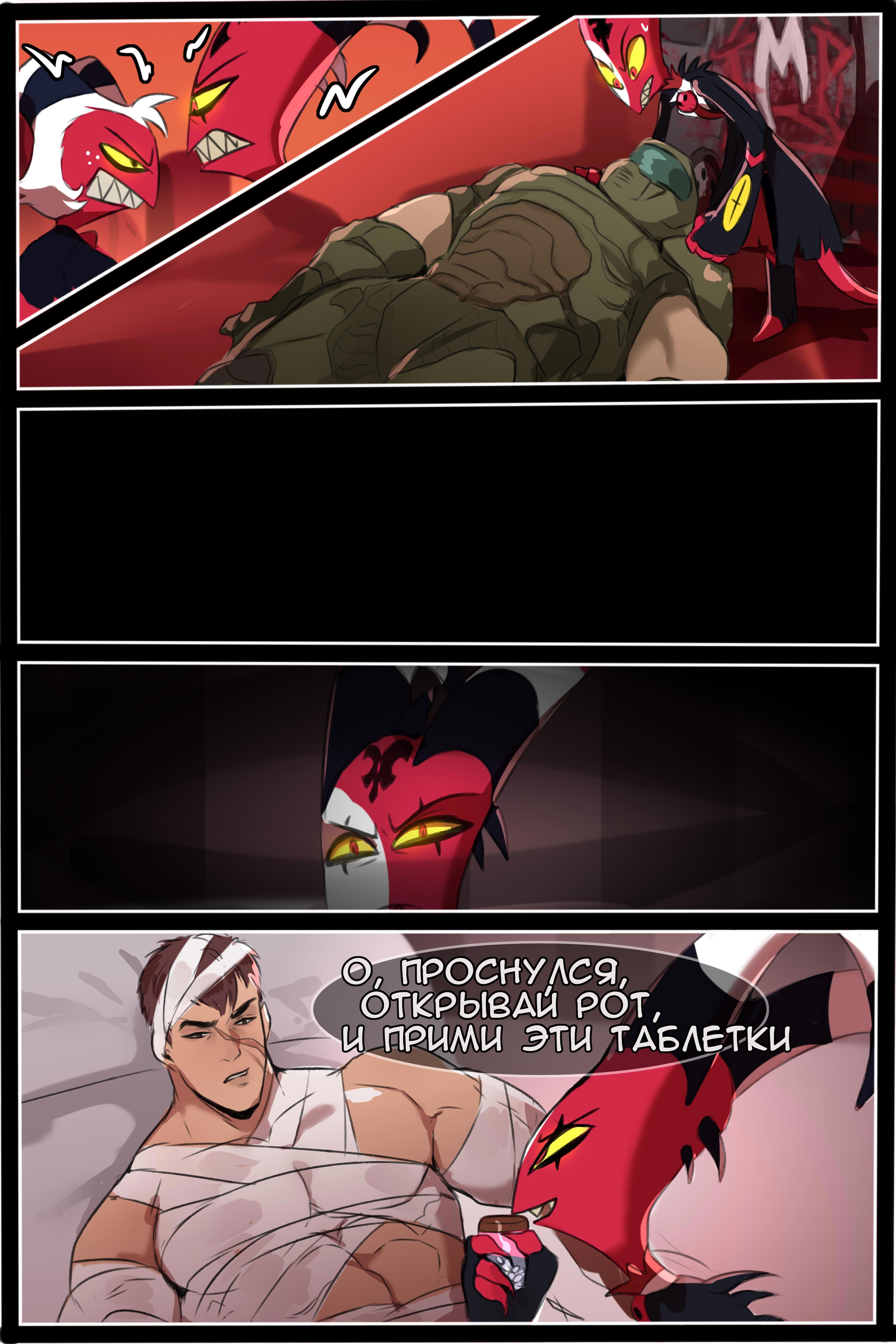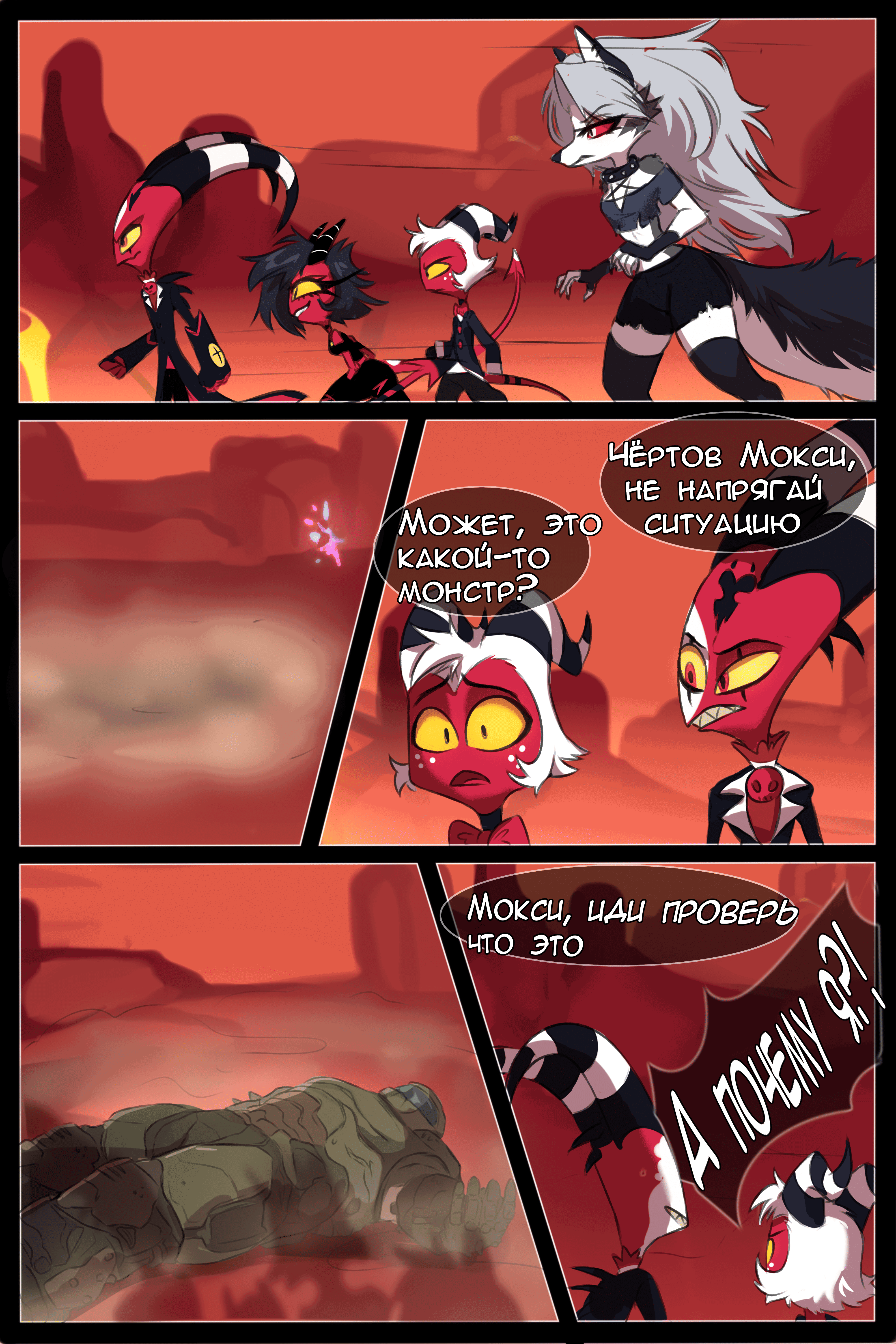 — …вы заметили, что он вообще не грешник?! Это ЧЕЛОВЕК! Настоящий живой человек! Какого хрена он делает в Аду?! — шипел Мокси, нервно теребя хвост.