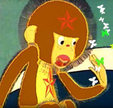 Обезьянка Шишка, забавное создание, непредсказуемое. Глава всек макак. Хоть и горбатое создание, но толковое.