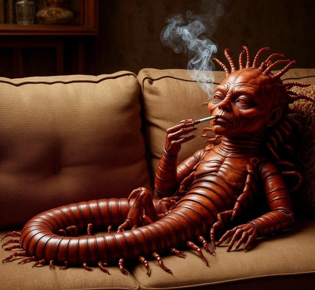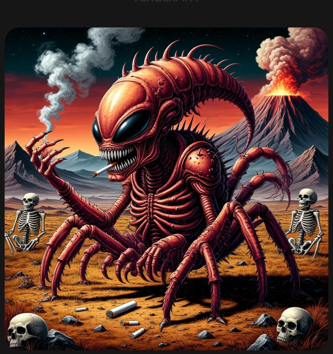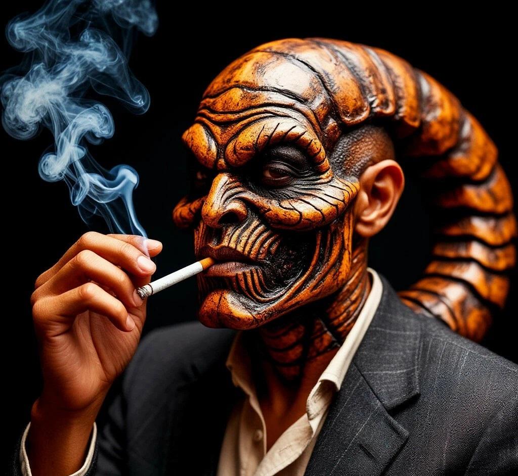 Используя ИИ, я сгенерировал несколько отвратных фоток с курящими монстрами – просмотр этих омерзительных картинок сильно снижает желание закурить. Фотки курящих монстров я поместил в конце данной брошюры. Советую сфотографировать их себе на телефон, чтобы они всегда были под рукой. Как только накатывает желание закурить (например, на улице, на корпоративе, на вечеринке в кругу друзей) – открываете соответствующие отвратные фото – желание закурить явно снизится. Если не понравились фотки, которые я сгенерировал – можете сгенерировать свои фотки и видео, с учетом своих предпочтений.