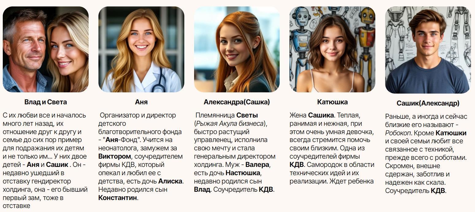 Ниже даю список действующих героев, они могут быть тебе уже знакомы по другим моим книгам, их стоит понять точнее, чтобы лучше себе представить происходящее. Главной героини там нет — события закрутятся вокруг нее и ты познакомишься с ней в процессе.