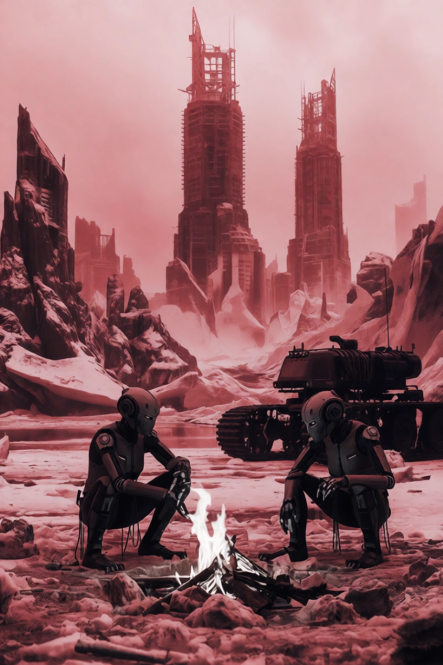 Согласно беседам, что мы вели перед костром, разжигаемым ночью и, согласитесь, весьма необычным для двух существ из металла, человеческая цивилизация канула в лету два миллиона лет назад. Каин жил здесь едва больше года. Слушая его скрипучую речь, я смотрел на голубоватый огонь, с трудом полыхавший низкими языками в разряженной атмосфере, и грел на убогом пламени руки, каждый раз забывая, что тепло не ласкает алюминиевых ладоней. Я с отвращением одёргивал пальцы от потрескивающих углей, неизвестно откуда добытых Каином среди ледяной пустыни, и продолжал смотреть на костёр, возложив голову на колени.