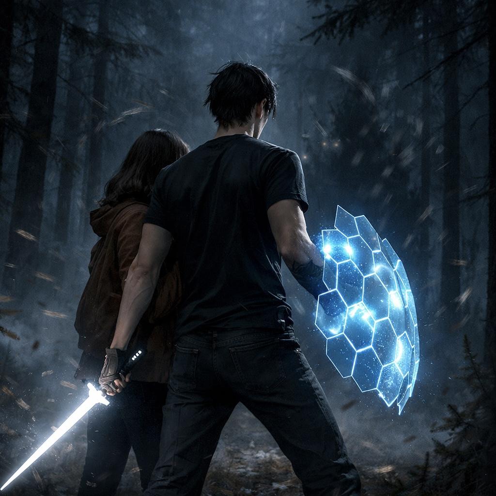 Семеон среагировал раньше, чем мой мозг подобрал слова. Он оттолкнул меня за массивный ствол дерева, закрывая собой. И в этот момент из самой плотности воздуха в его левой руке возник клинок — тонкий, вибрирующий луч стали. Правую руку он вскинул вперед, и перед ним, со стоном разрываемого эфира, развернулся сегментированный щит. Бледно-голубое сияние на мгновение ослепило меня.