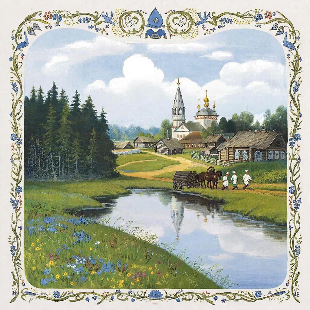 Но заглавным украшением деревни была церковь. Стояла поодаль села, близ тракта, так что издали купола углядеть можно. Строили её всем миром, не торопясь, с молитвой да добрым словом. Каждый, сколь мог, своё участие вложил: кто брёвна возил, кто камень тесал, кто кровлю крыл. Издали поглянешь - на сердце радость, стоит чистёхонькая, ровно лебедь белая. И внутри была расписана с великим старанием. На сводах — лики святые, на стенах — сцены из Писания, над алтарём – Спас Вседержитель.