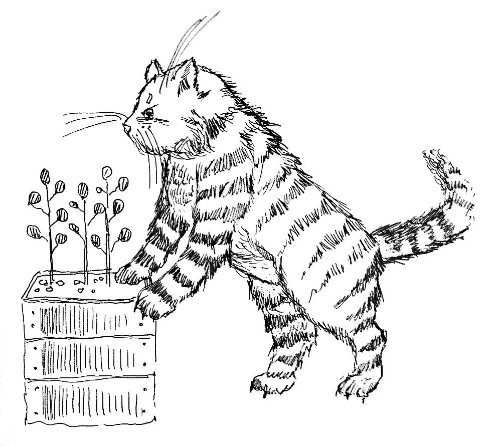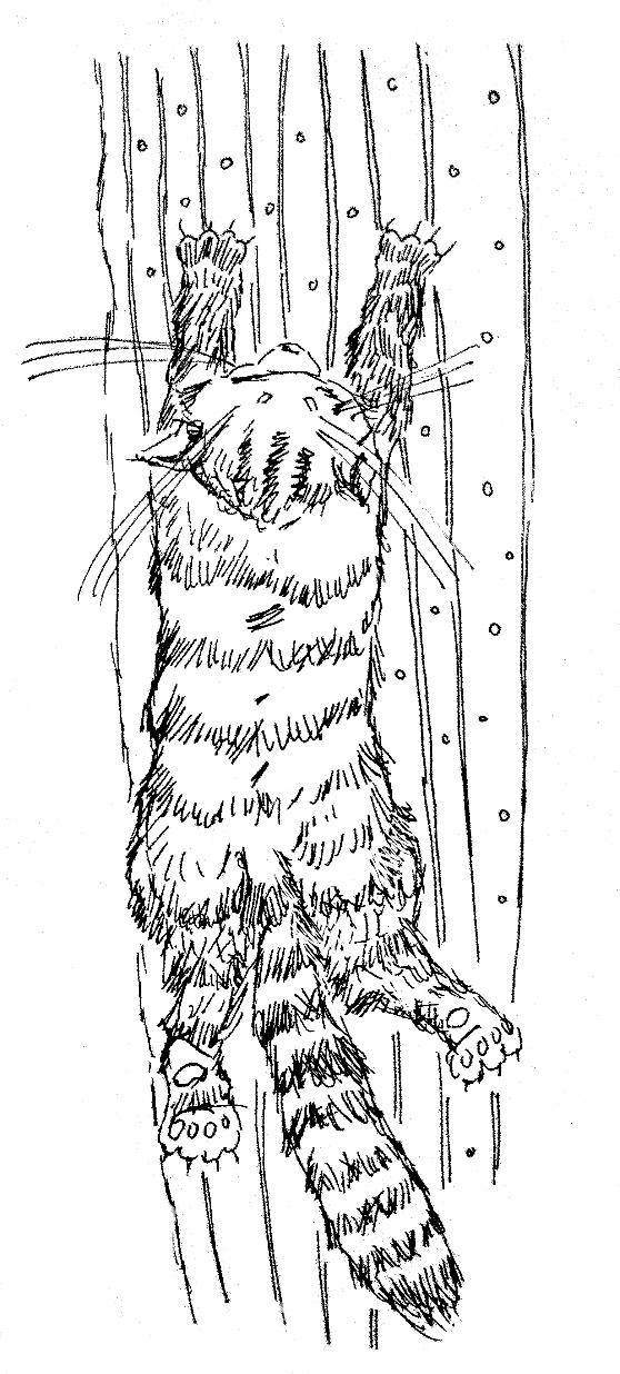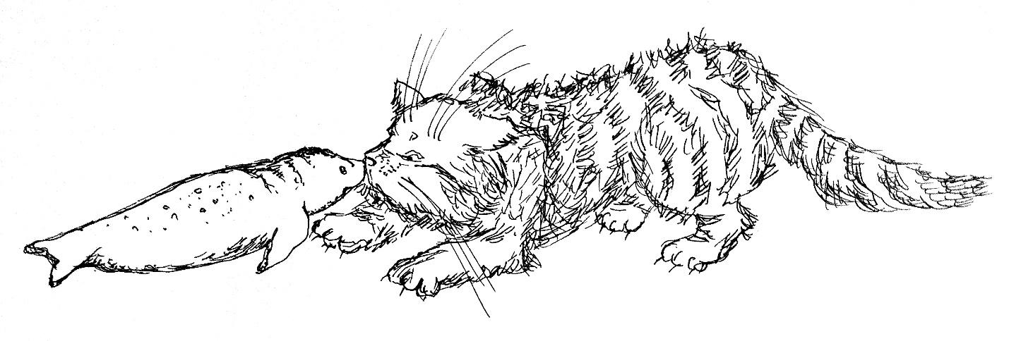 — Это наш кот Сёмка! — начал быстро объяснять Ромка. — На самом деле он чёрный-пречёрный! Две недели тому назад Сёмка встретил скунса, и тот выстрелил в него своей вонючей жидкостью. Кот прибежал домой, и у нас стояла такая вонища, что мы все выскочили на улицу…