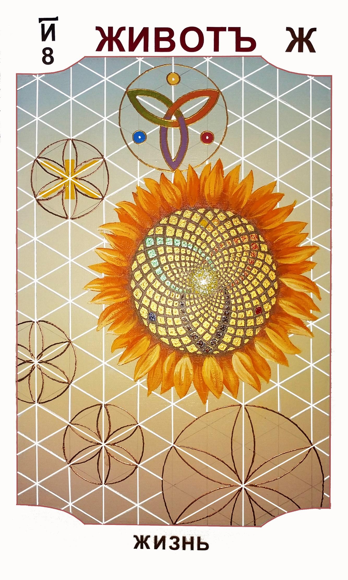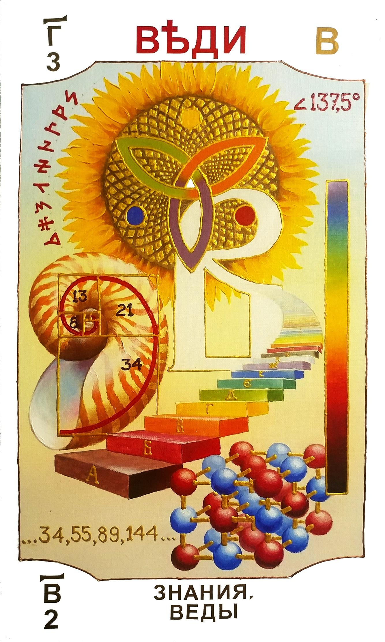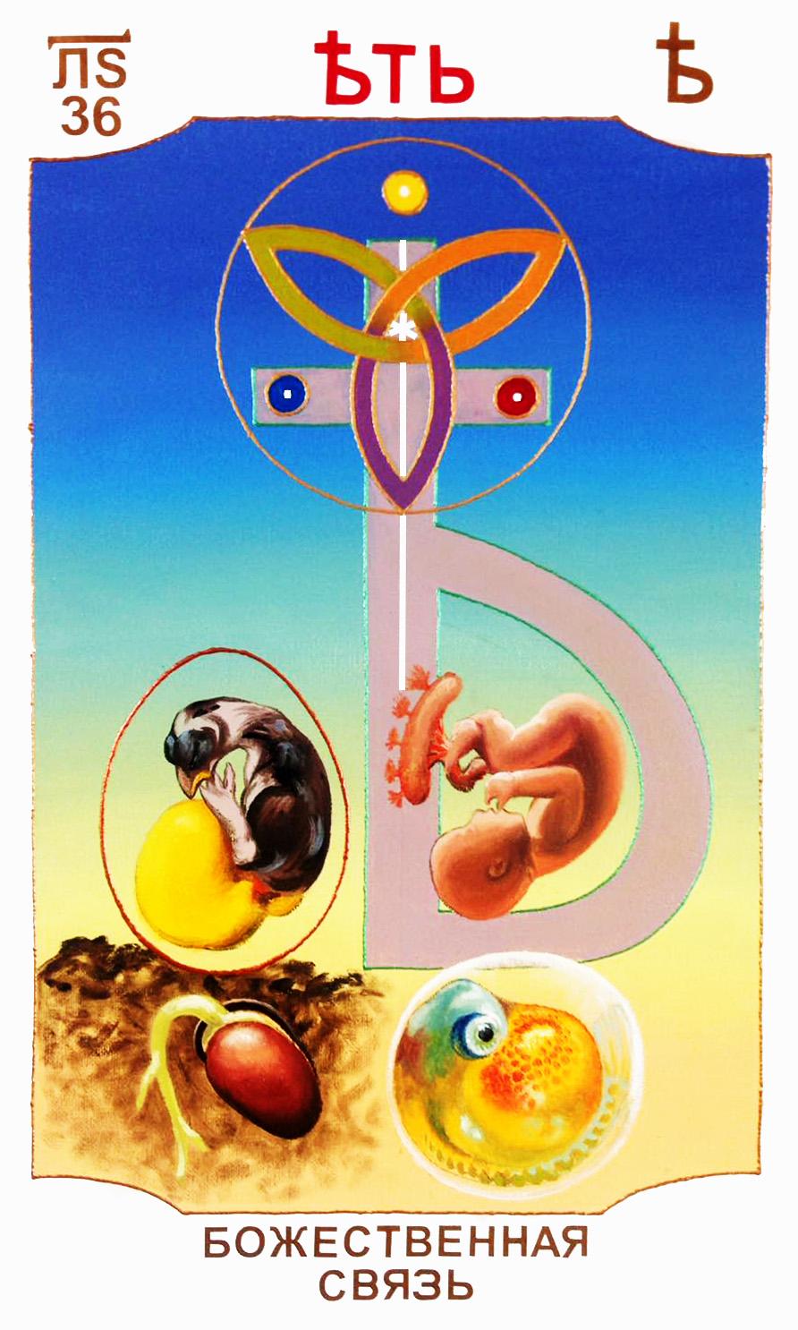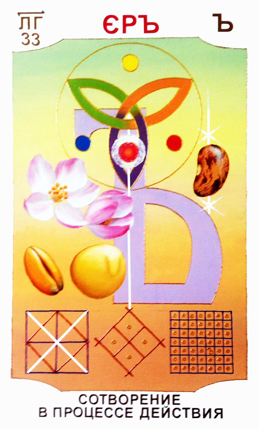 » указывает на меру времени пути совершенствования тела и Души и включает в себя все остальные буквицы, последовательность которых указывает на основы мироустройства, и на образные «ключи», которые необходимы для более глубокого проникновения с-о-знания в тайны Вселенной.