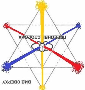 -- Значение плоского начертания буквицы: - По системе КОЛО две диагональные черты исходят из нижней части «лепестка» Даждьбог и расширяются вверх к Миру Яви. Это указывает на образ роста, совершенствования и расширения. Это тот сосуд-тело-душа, которая, накапливая растет. Это поток совершенствования, направленный вверх. Это нижний (женский) исток, а верхний исток Духа (мужской) направлен сверху вниз. Вот и получился плоский Об-Раз звездного тетраэдра. (Случайностей в этой древней системе не бывает. Тут одни закономерности).