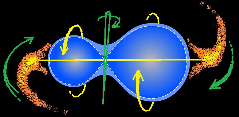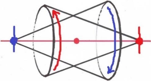 Такая встреча двух противоположных потоков Духа в центре структуры хорошо проявлена в космических формах жизни, где отчетливо видны места встречи потоков. К тому же плоские диски галактик, это тоже результат встречи и «трения» двух противоположных потоков Духа, которые через ряд последовательных уровневых преобразований создают материальные формы разных уровней.