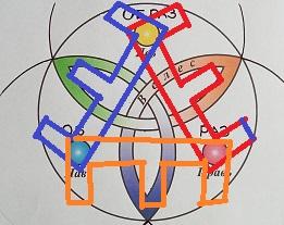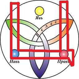 » почти соответствует пути Велеса в системе КОЛО. Путь Велеса, это схематический принцип построения электромагнитного поля, где линии замкнуты сами на себя и потому, в КОЛО только 3 линии. А буквица «