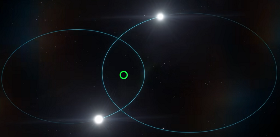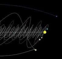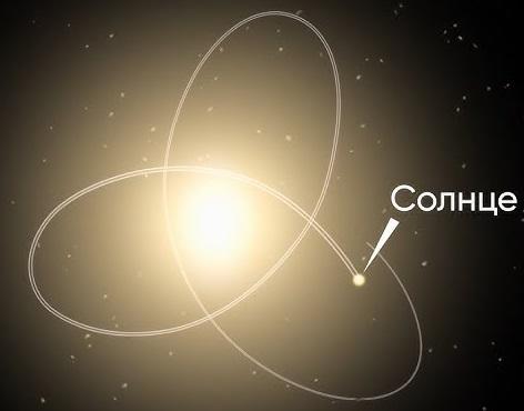 Рисунок схематичный. Движение Земли вокруг Солнца происходит по вытянутой спирали и при этом рисунок последующих витков не будет совпадать с предыдущими. Как пример, ниже приведен схематичный рисунок движения Солнца вокруг общей оси-связи спиралевидного движения.