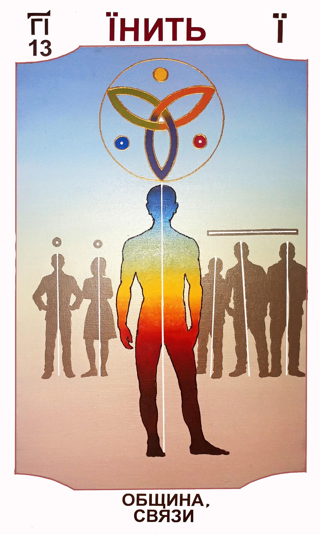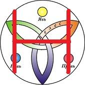 » указывает на единство Духа в природе, который создает оные структуры всех форм жизни. В создании Оной структуры принимают два истока Духа, один условно мужской, а другой условно женский. Условно мужской Дух является активным и несет чистую энергоинформацию ЕПВ, которая вносит свои коррективы в разворачивающуюся оную структуру, Душу. Эта активная энергоинформация в дальнейшем будет побуждать форму жизни к развитию и совершенствованию, то есть это движение в будущее, ведь «мужское начало» по системе КОЛО связано с Миром Прави и буквицей «