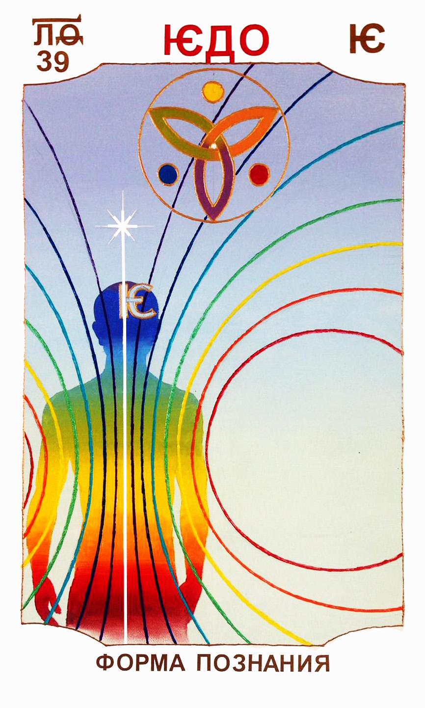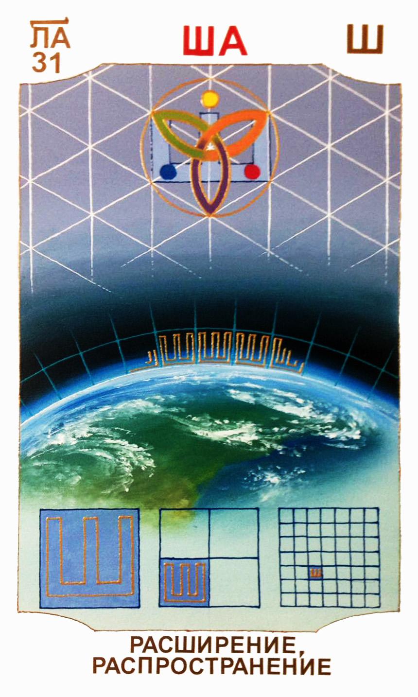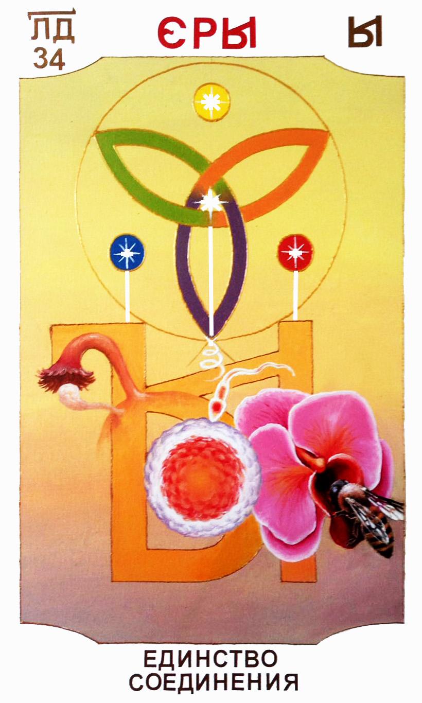 Так как целостная система из 49-ти буквиц создана высшим проявлением разума Вселенной называемым КОЛО (оная структура; решетка сознания), то каждая из буквиц совмещается с центральной системой универсальных образных знаний - КОЛО и все буквицы являются Его составной частью. Такое совмещение дает возможность более полного и всеобъемлющего восприятия информации о буквицах. И при этом каждая буквица будет дополнять все остальные, а также будет дополнять информацию о самом КОЛО.