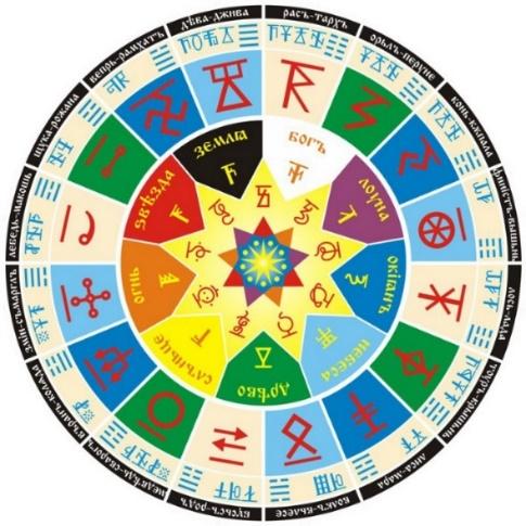 Вселенная устроена так, что большое повторяется в малом, это называют принципом фрактальности, или масштабированием. Это также называется уровнями развития. Есть объекты (и явления) менее развитые и есть более развитые. Но изначальные принципы их построения одинаковы. Есть что-то общее главное, что диктует свои законы всем остальным, находящимся на менее развитых уровнях. Это и есть Вселенная. Она является самой развитой структурой и все, что находится в Ее пределах, создано по Ее принципам и законам. Вот и среди Знаков, чисел, рун и буквиц тоже есть что-то, что является главными основополагающими принципами, которые помогают в понимании других составляющих. Это то общее, что является «ключом» к пониманию частностей. Это тот самый центр и среда вокруг цента, о котором сказано в Праведах: -