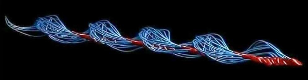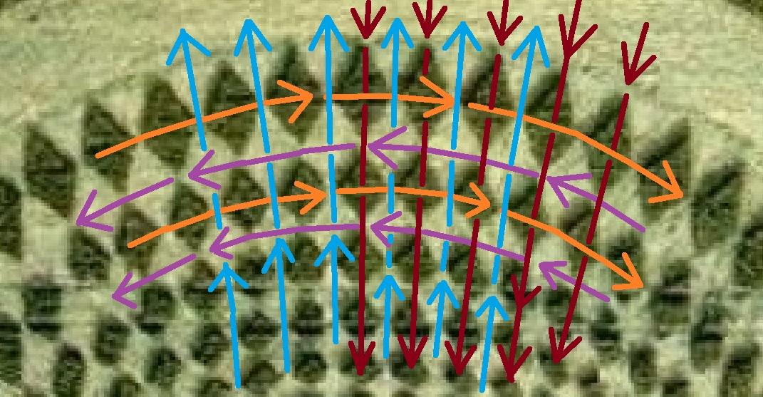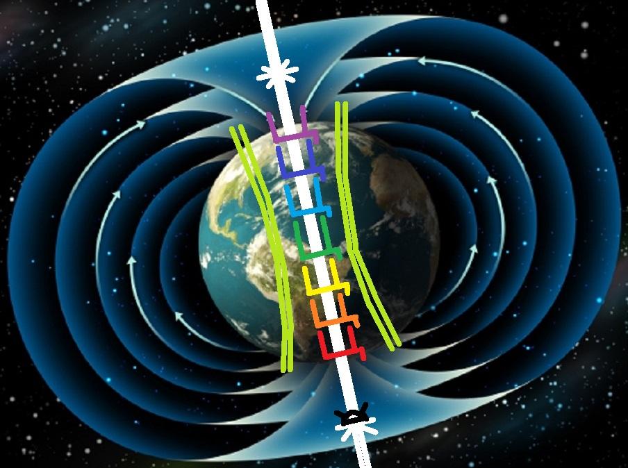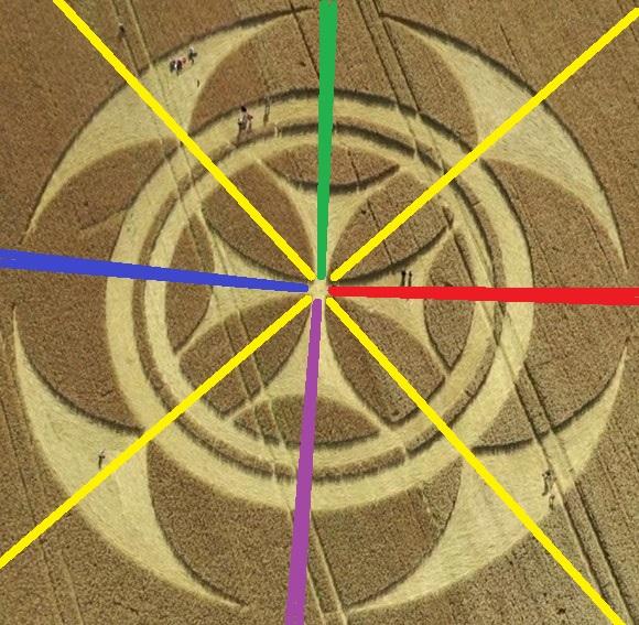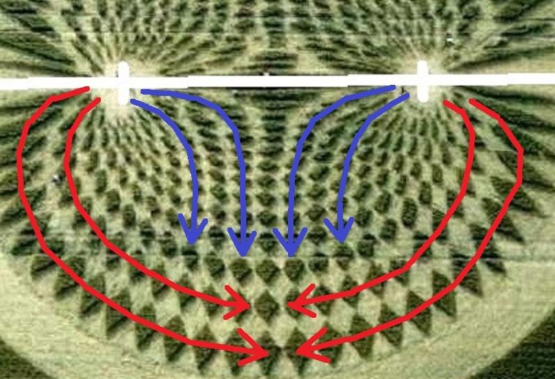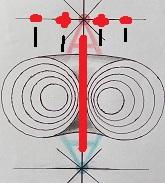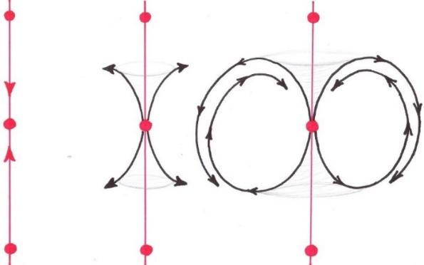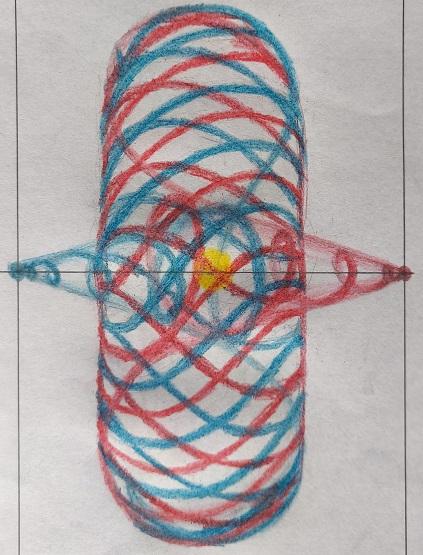 » хоть тоже является схематичной, указывает на то, что электромагнитный поток, движущийся по спирали, продолжает это движение. Причем витки спиралевидного движения не последовательны друг за другом, а идут через определенный угол и заполняют общий рисунок электромагнитного поля через определенное количество витков. (Это видно на примере рисунка движения Солнца выше по тексту, а также видно при составлении чертежа КОЛО). В буквице «