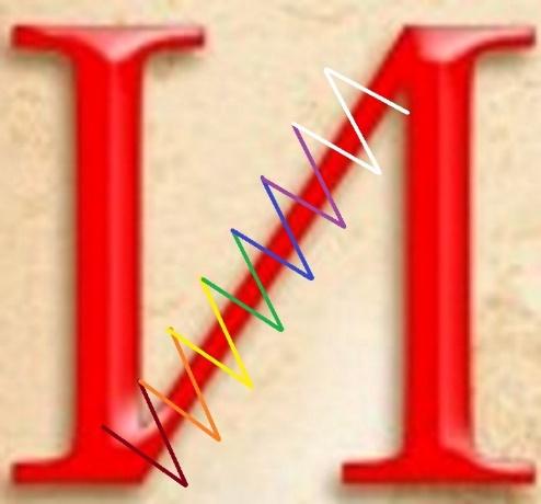 -- Вертикальная черта в системе КОЛО указывает на основную ось-связь, вдоль которой происходит движение энергоинформационного потока. Это движение может происходить в противоположных направлениях. (Например, буквицы «Б, В, Г, i, Р, Т» и т.д.).
